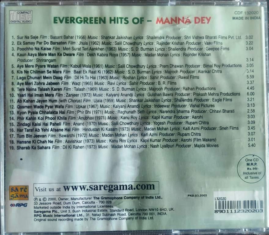 | Title | : | Manna Dey - Evergreen Hits Of Manna Dey |