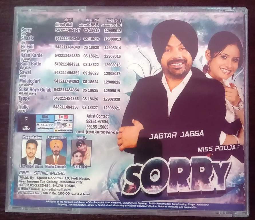 | 1. Sorry | : | Jagtar Jagga & Miss Pooja |