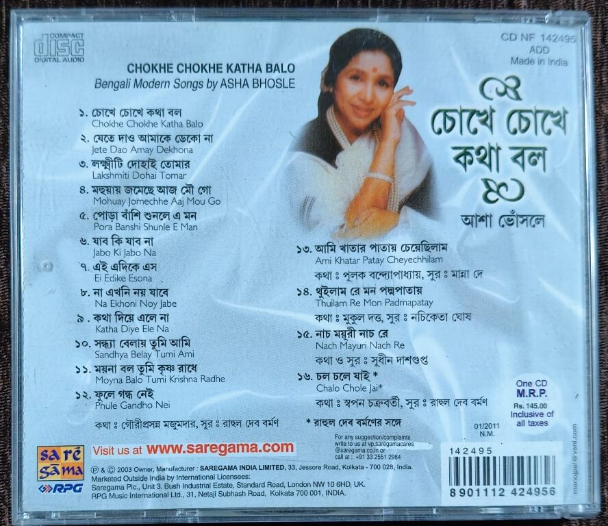 | Title | : | Asha Bhosle - Chokhe Chokhe Katha Balo - Bengali Modern Songs |
