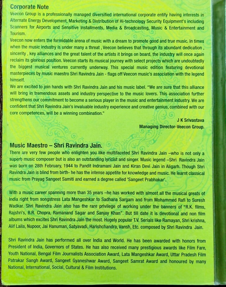 | 2. Shri Ram Jai Ram Jai Jai Ram | : | Ravindra Jain & Chorus |