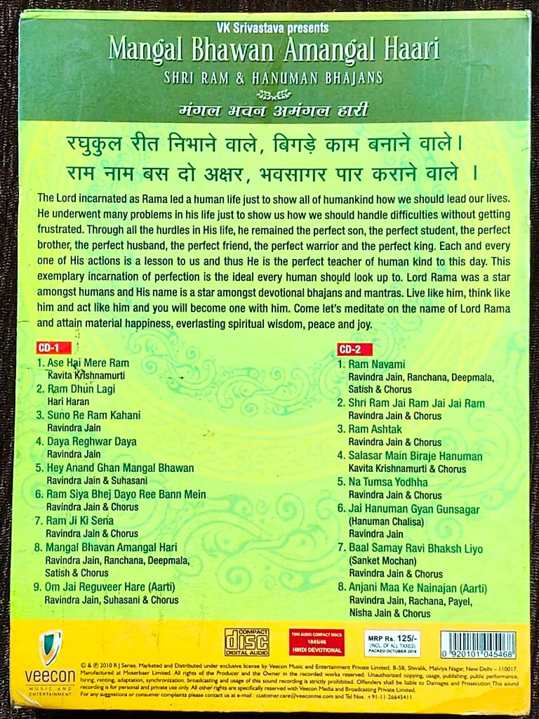 | Title | : | Mangal Bhawan Amangal Haari -Shri Ram & Hanuman Bhajans |