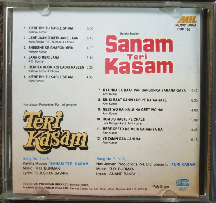 | Music Direction Of Teri Kasam | : | R. D. Burman |