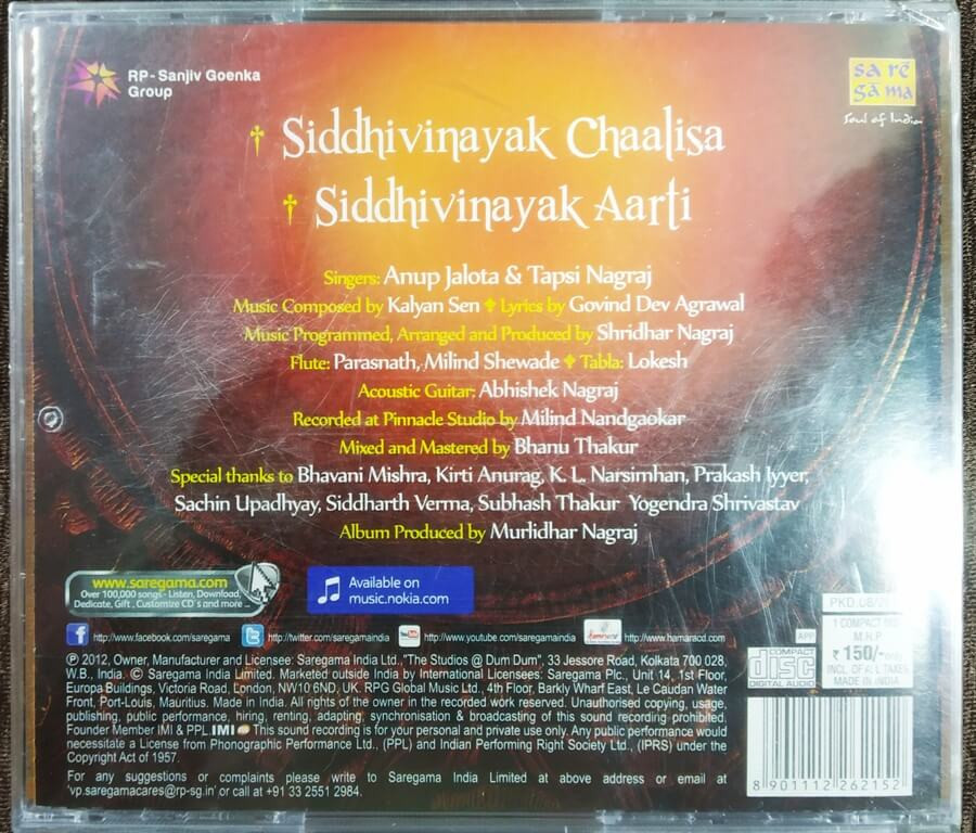 | 1. Siddhivianayak Chaalisa | : | Anup Jalota & Tapsi Nagraj |