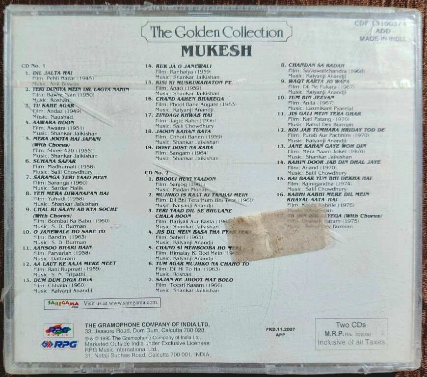 | Title | : | Mukesh – The Golden Collection - Mukesh Vol |
