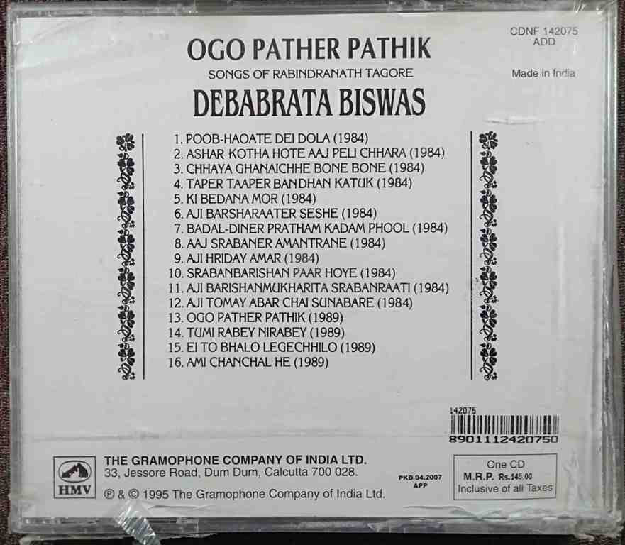 | Title | : | Debabrata Biswas - Ogo Pather Pathik - Songs Of Rabindranath Tagore |