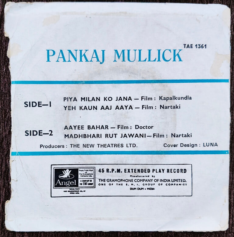 | A1. Piya Milan Ko Jana (Kapalkundla) | : | Pankaj Mullick |