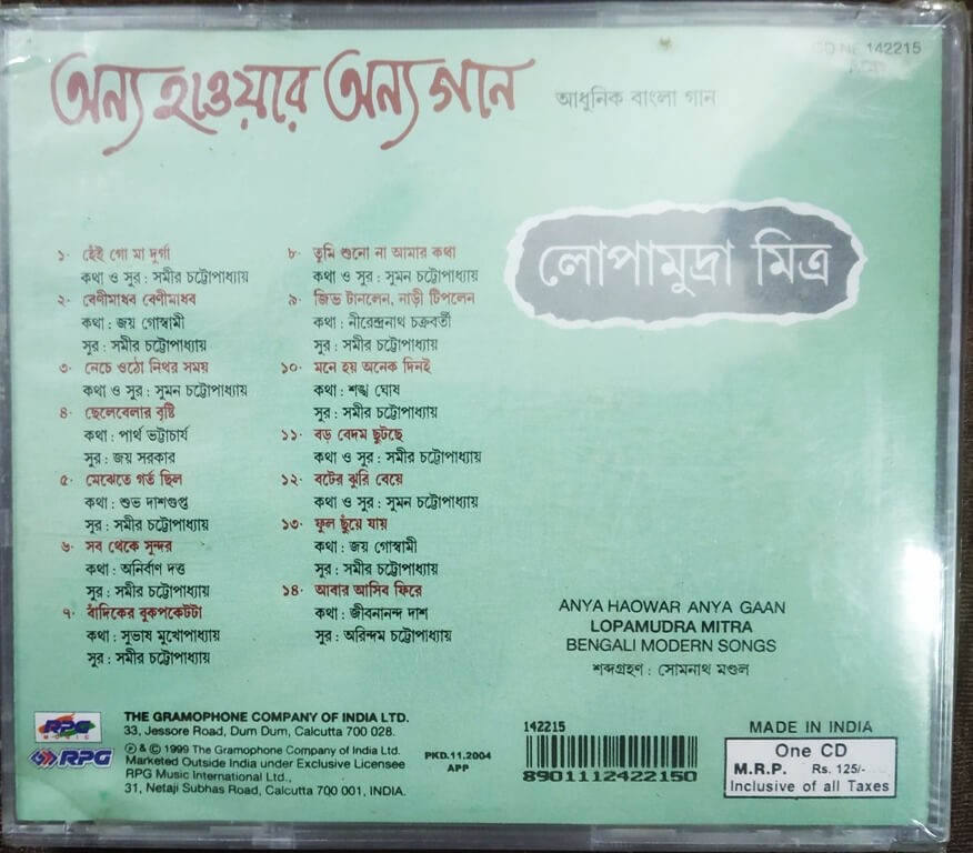 | Title | : | Lopamudra Mitra - Anya Haowar Anya Gaan - Bengali Modern Songs |