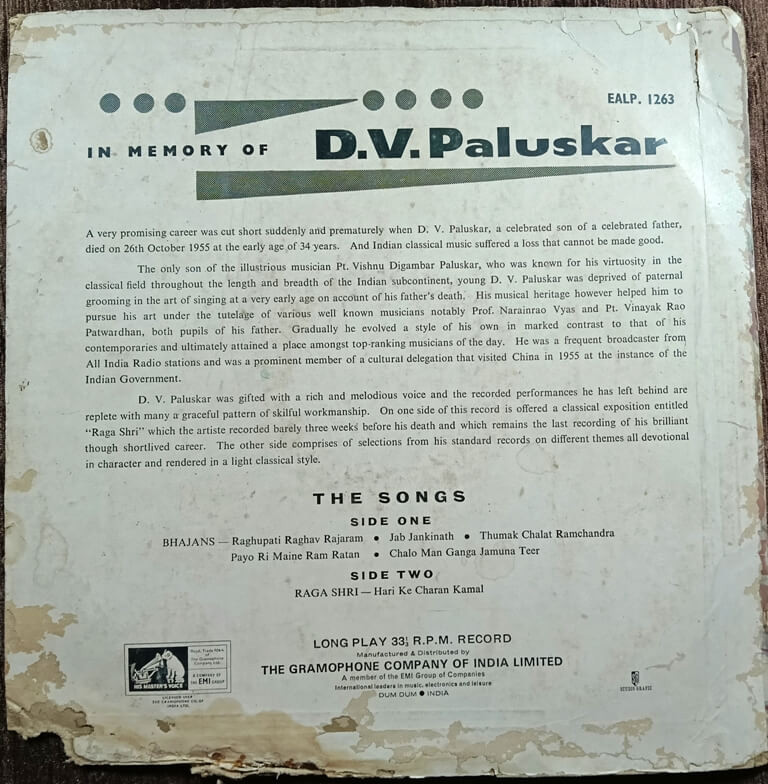 | Title | : | D.V. Paluskar – In Memory Of D.V. Paluskar |