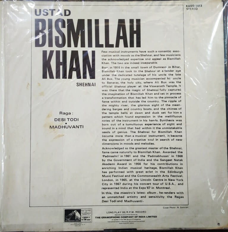 | Title | : | Ustad Bismillah Khan – Desi Todi / Madhuvanti |
