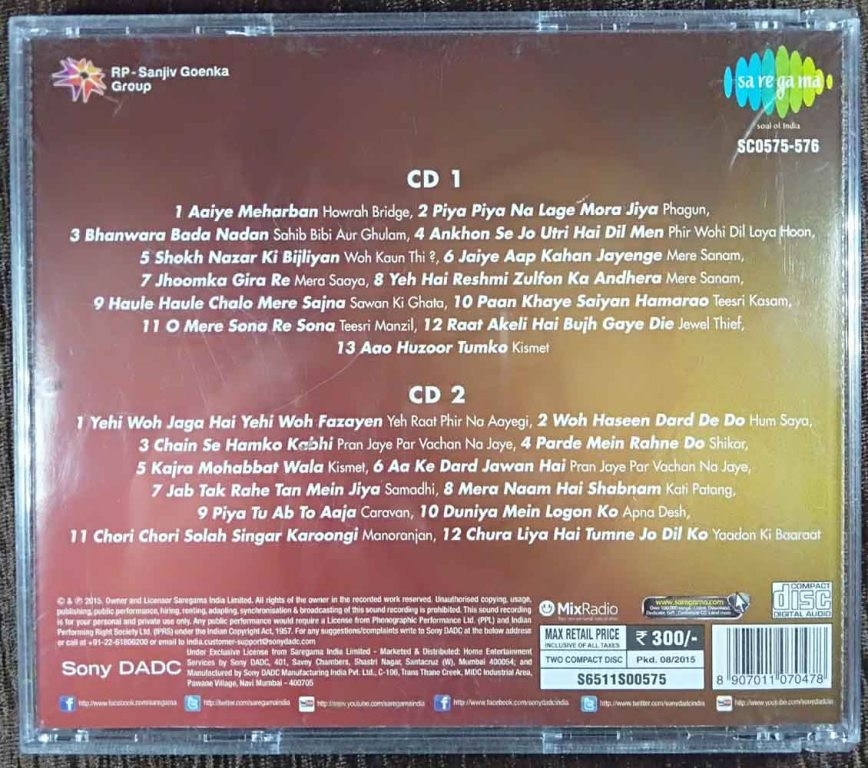 | 11. O Mere Sona Re Sona - Teesri Manzil | : | Asha Bhosle & Mohd. Rafi |