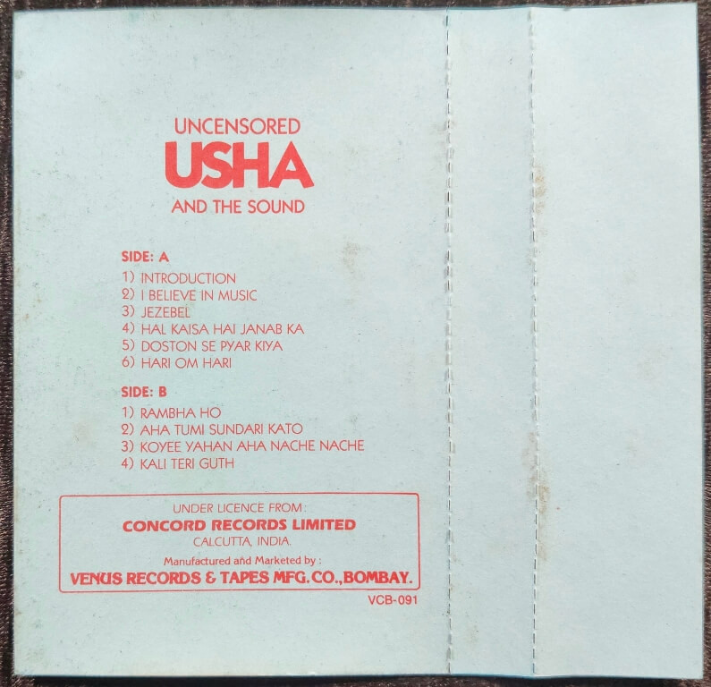 Usha Uthup - Usha And The Sound – Uncensored (1984) Pop Music Album Pre-Owned Venus Audio Cassette