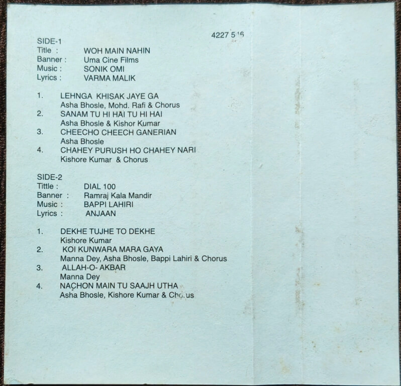 | B2. Koi Kunwara Mara Gaya | : | Manna Dey, Asha Bhosle, Bappi Lahiri & Chorus |