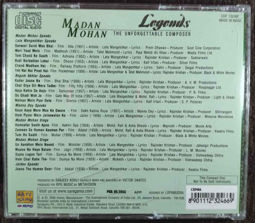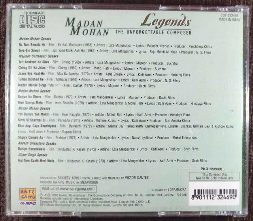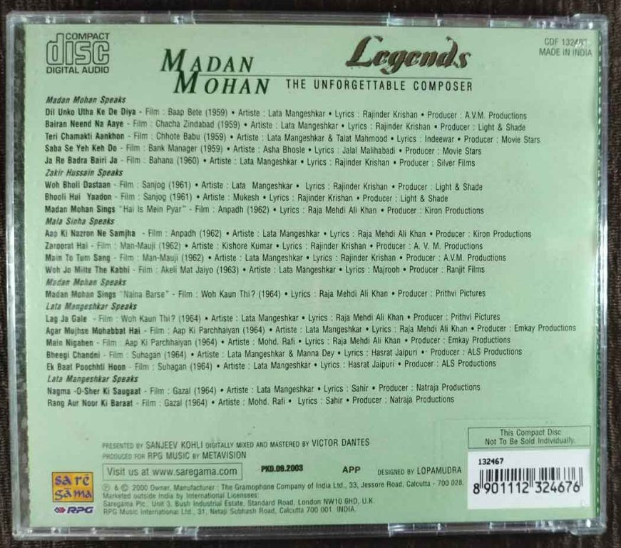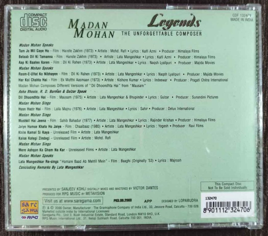 | Title | : | Madan Mohan - Legends - The Unforgettable Composer |