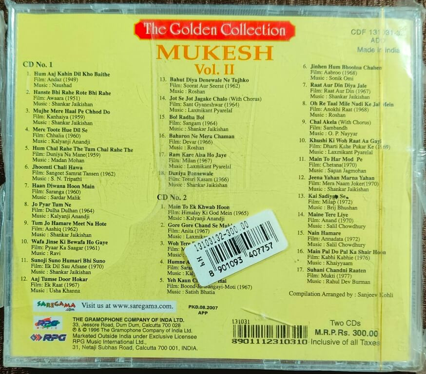 | Title | : | Mukesh – The Golden Collection - Mukesh Vol II |