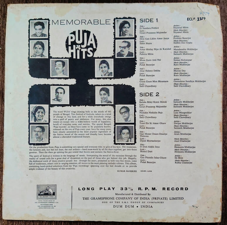 Memorable Puja Hits (1968) Compilation Pre-Owned His Master's Voice Vinyl, 12" LP Record