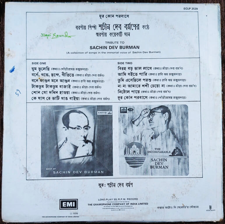 S.D. Burman - Dur Kon Porbashe (Tribute To Sachin Dev Burman) (1976) S.D. Burman Pre-Owned His Master's Voice Vinyl, 12" LP Record