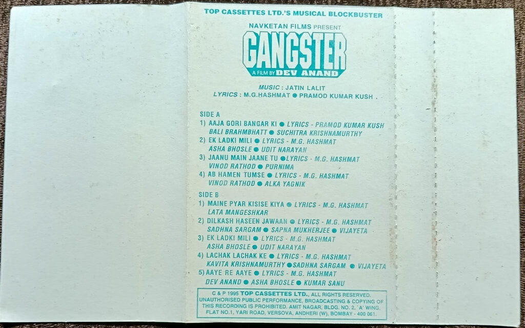 | B5. Aaye Re Aaye | : | Dev Anand, Asha Bhosle & Kumar Sanu |