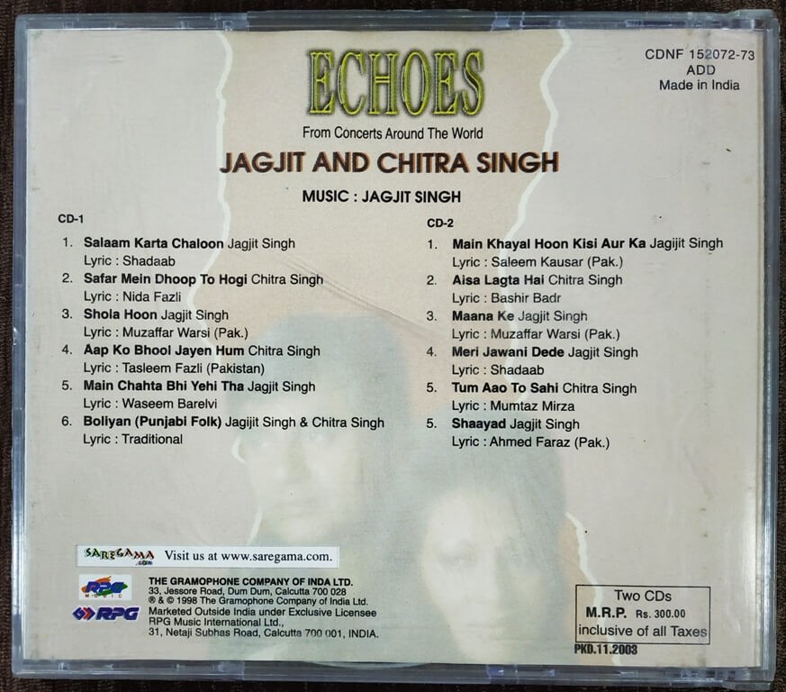 | Title | : | Jagjit & Chitra Singh – Echoes From Concerts Around The World |