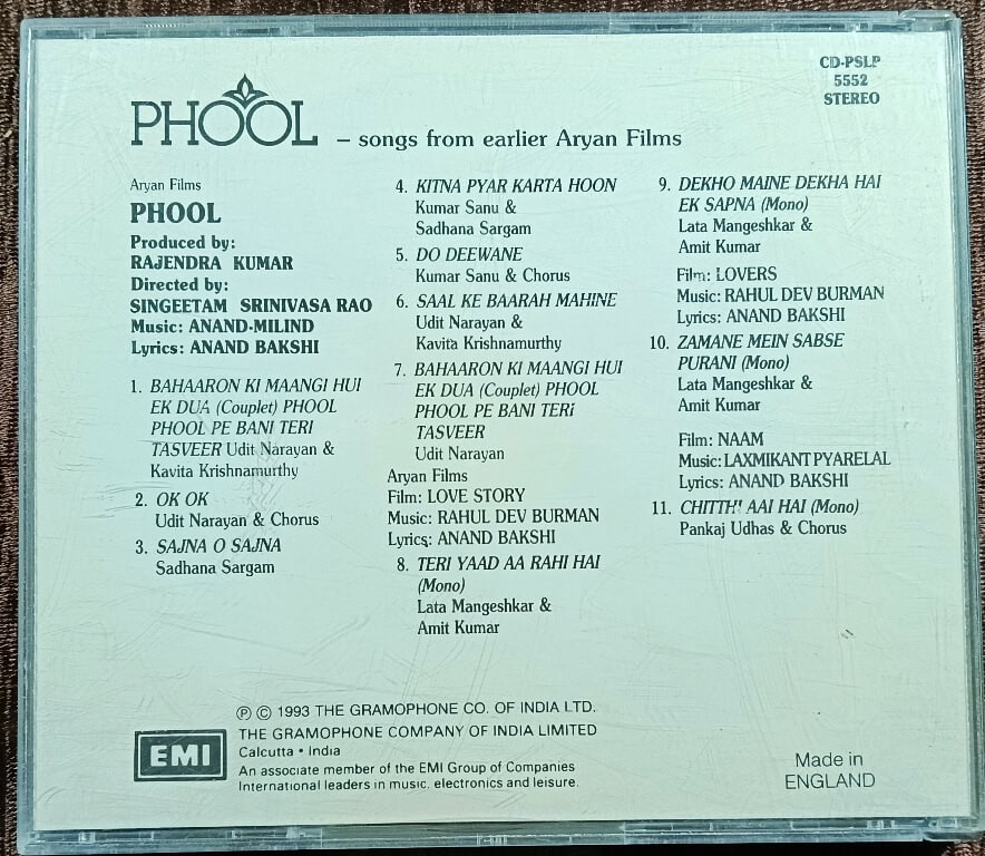 | 1. Phool Phool Pe Bani Teri Tasveer | : | Udit Narayan & Kavita Krishnamurthy |