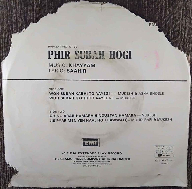 | 1. Woh Subah Kabhi To Aayegi - I | : | Mukesh & Asha Bhosle |