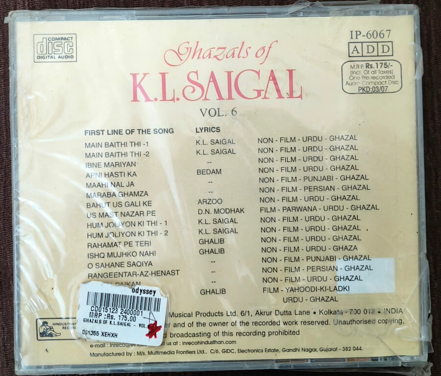 | Title | : | Ghazals of K.L. Saigal – Vol. 6 |