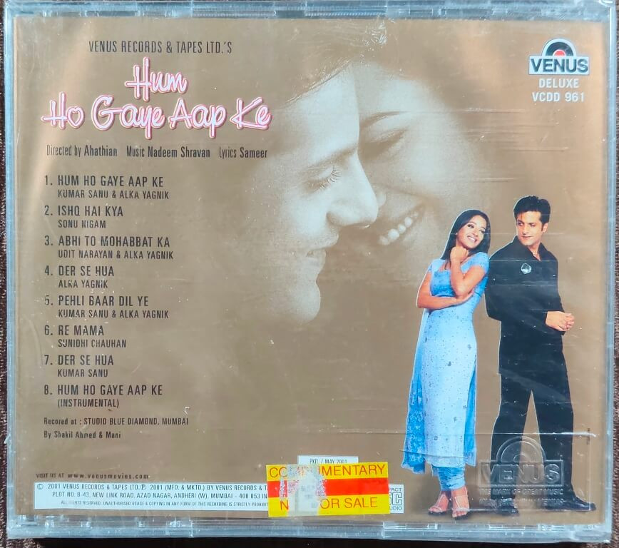 Hum Ho Gaye Aap Ke (2001) Nadeem-Shravan Pre-Owned Venus Audio CD