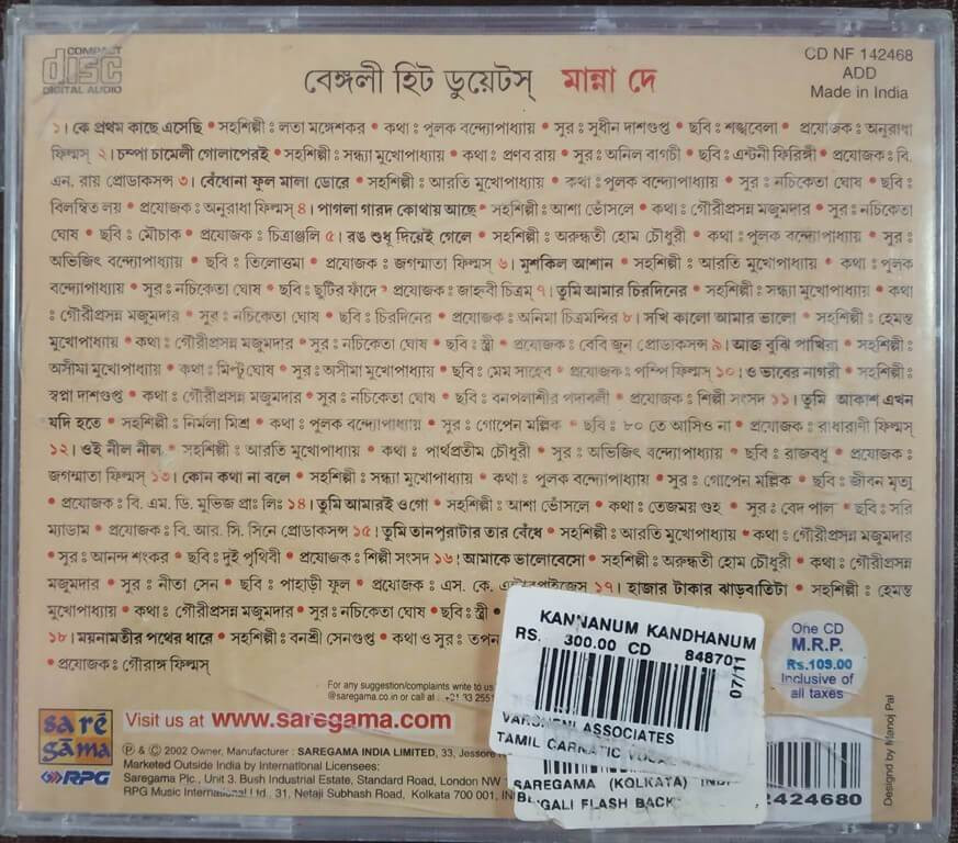 | Title | : | Manna Dey - Bengali Hit Duets |