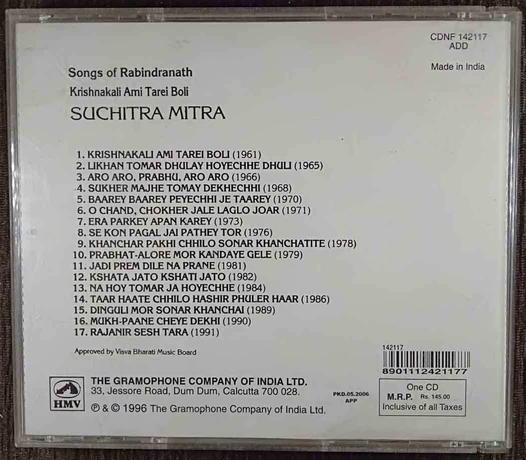| Title | : | Suchitra Mitra – Krishnakali Ami Tarei Boli – Songs Of Rabindranath Tagore |