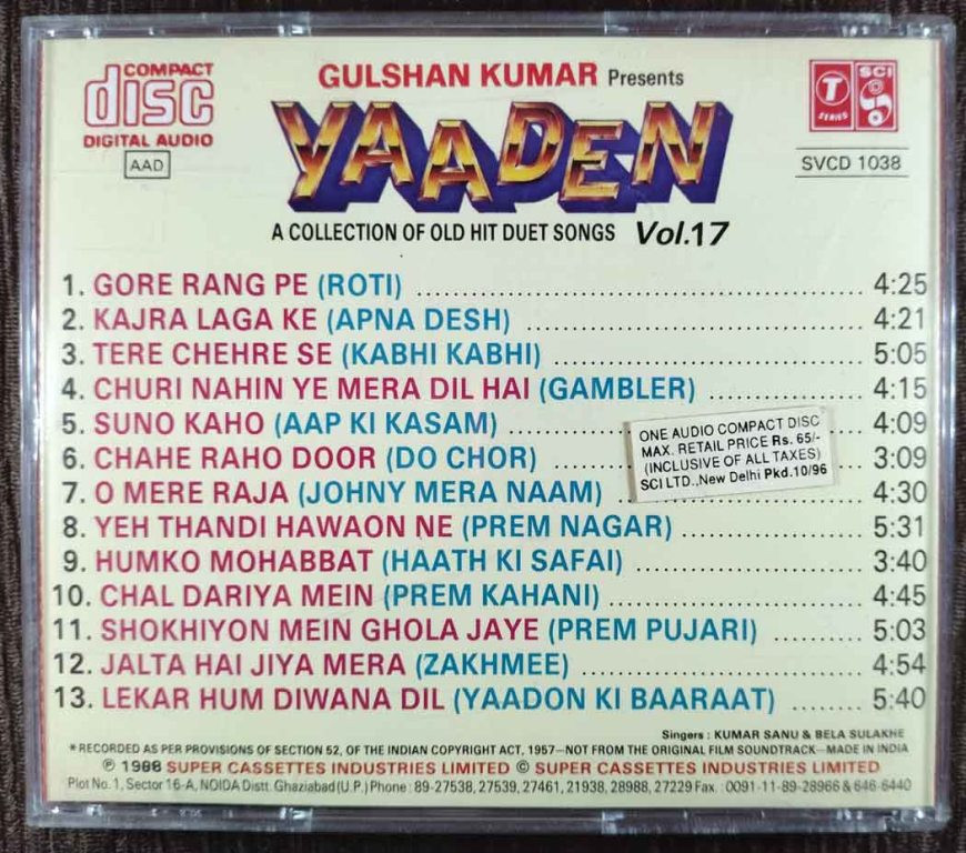 | Title | : | Kumar Sanu & Bela Sulakhe - Yaaden - A Collection Of Old Hit Duet Songs Vol 17 |