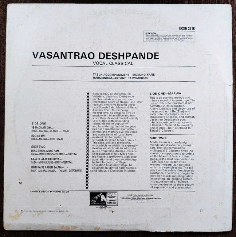 | B2. Aaja Re Aaja Pathikva - Raga Madhukauns - Drut Teentaal | : | Vasantrao Deshpande |