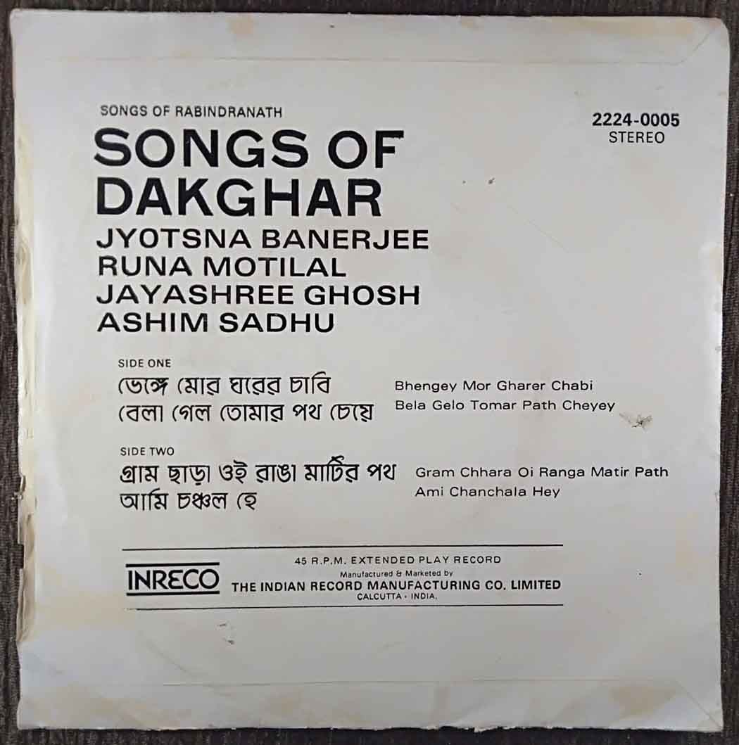 | Title | : | Jyotsna Banerjee, Runa Motilal, Jayashree Ghosh & Ashim Sadhu - Songs Of Dakghar - Songs Of Rabindranath |