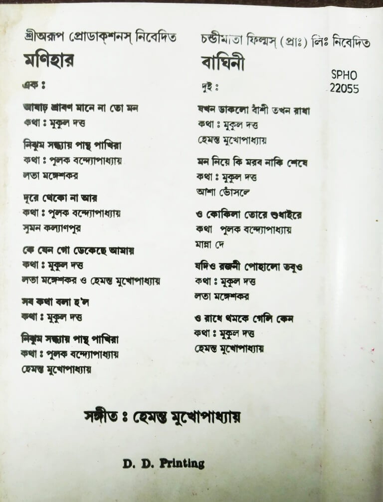| Music Direction of Monihar | : | Hemant Mukherjee |