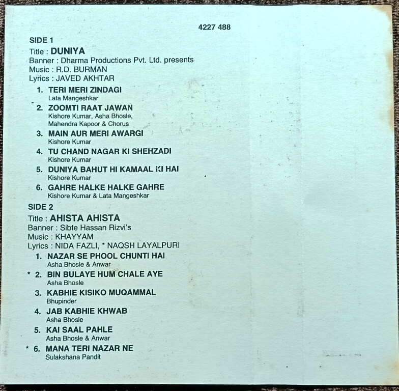 | A2. Jhoomti Raat Jawan | : | Kishore Kumar, Asha Bhosle, Mahendra Kapoor & Chorus |