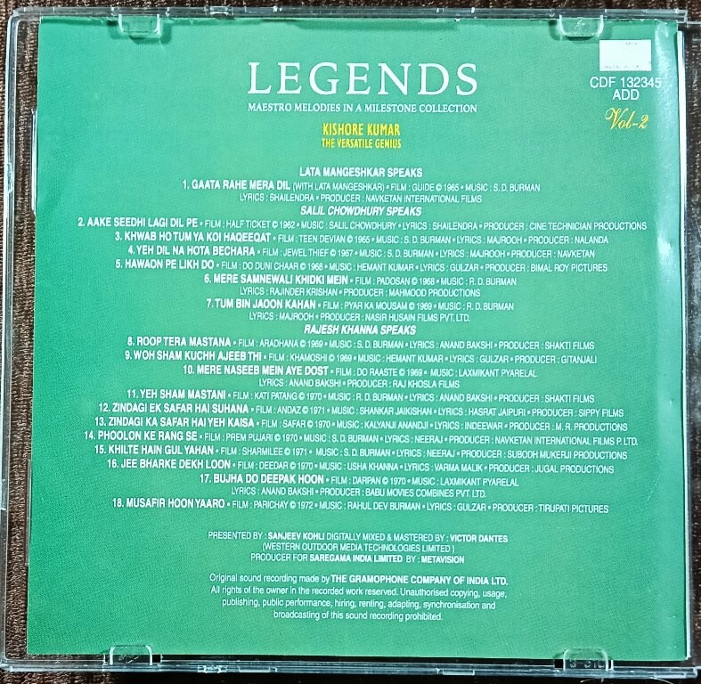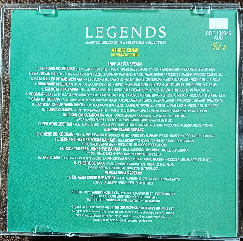 | Title | : | Kishore Kumar - Legends - Maestros Melodies In A Milestone Collection |