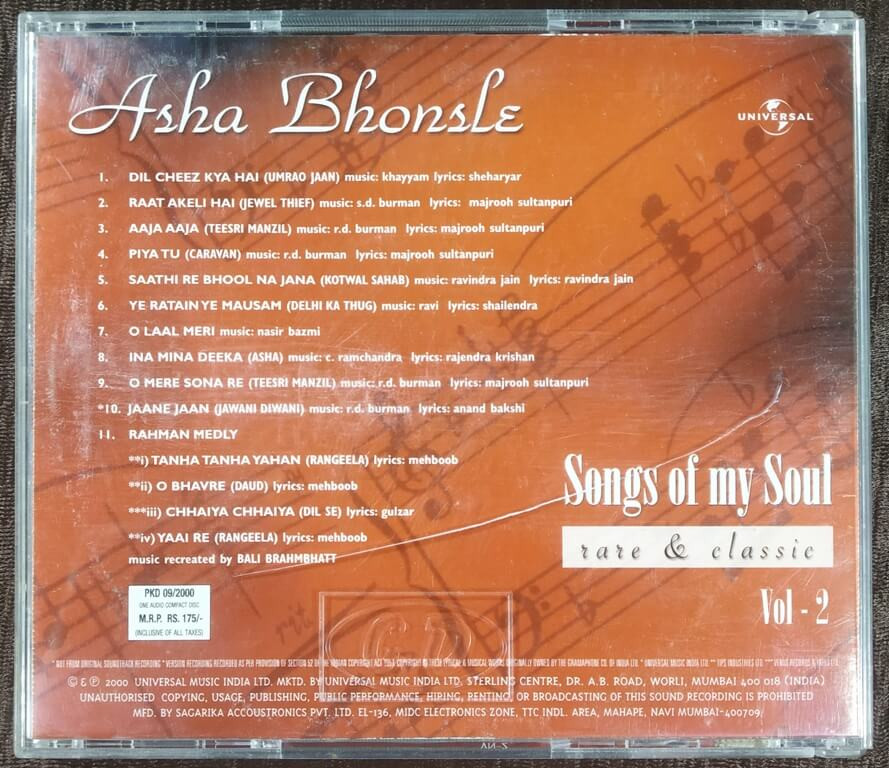 | Title | : | Asha Bhosle - Songs Of My Soul - Rare & Classic - Vol 2 |