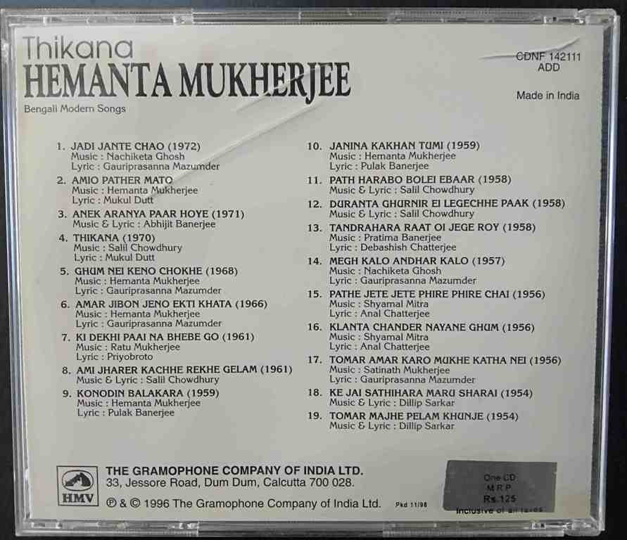 | Title | : | Hemanta Mukherjee - Thikana - Bengali Modern Songs |