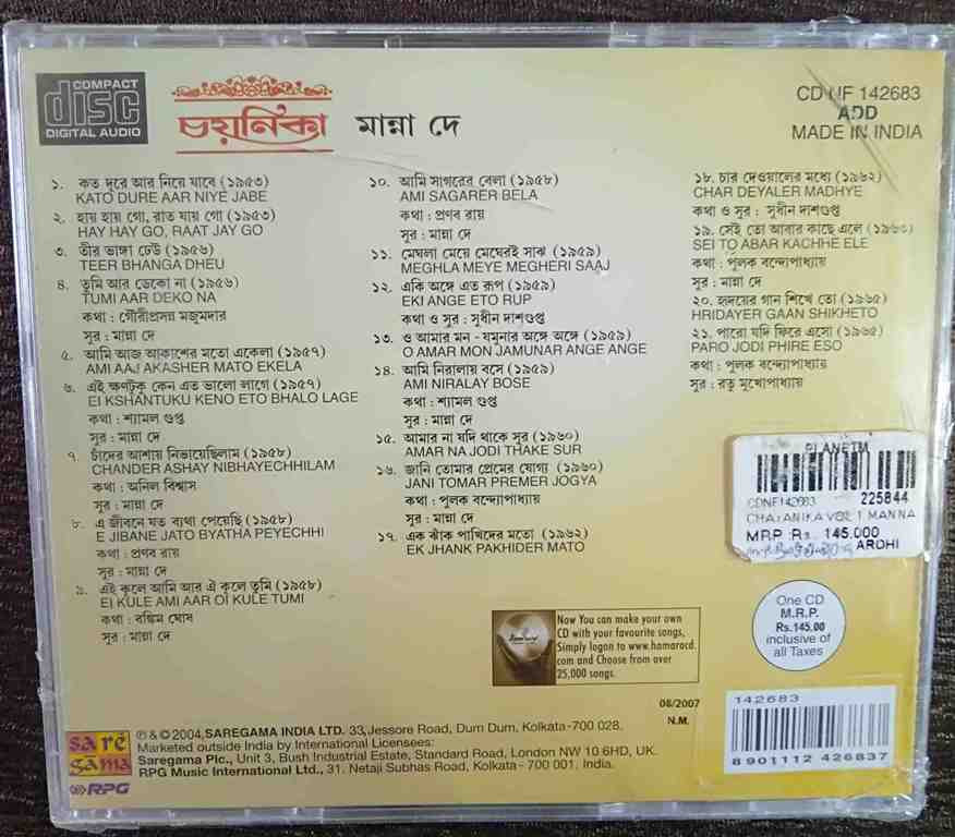 | Title | : | Manna Dey - Chayanika Bengali Modern Songs |