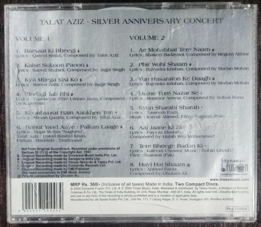 | Title | : | Talat Aziz Silver Anniversary Concert |
