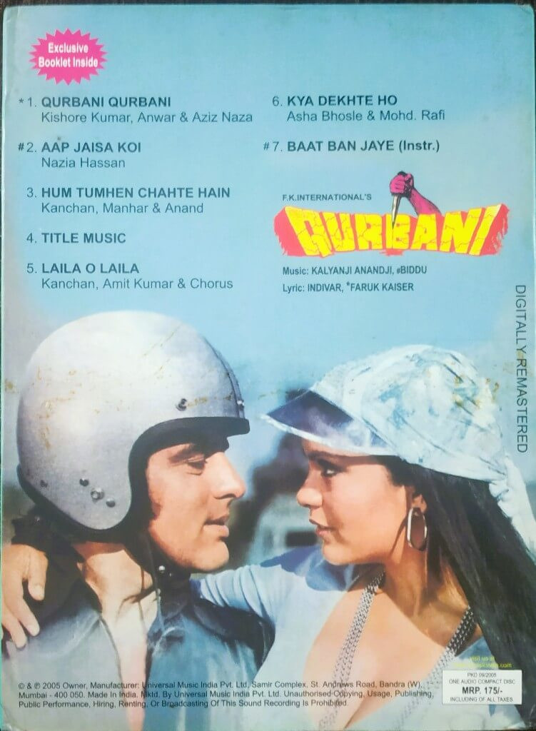 | 1. Qurbani Qurbani | : | Kishore Kumar, Anwar & Aziz Naza |