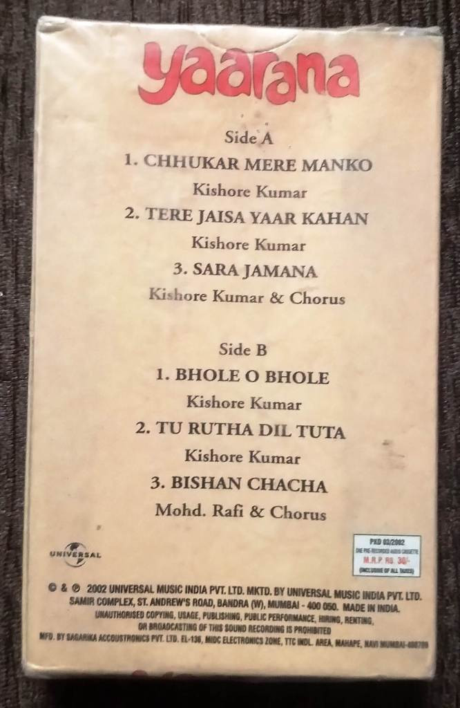 | 2. Tere Jaisa Yaar Kahan | : | Kishore Kumar |