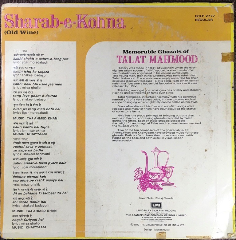 | Title | : | Talat Mahmood – Sharab-E-Kohna (Memorable Ghazals Of Talat Mahmood) |