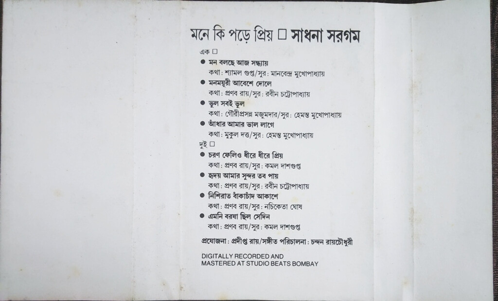 | A1. মন বলছে আজ সন্ধ্যায় | : | Sadhana Sargam |