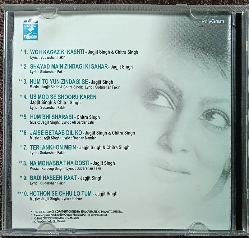 | 1. Woh Kagaz Ki Kashti | : | Jagjit Singh & Chitra Singh |