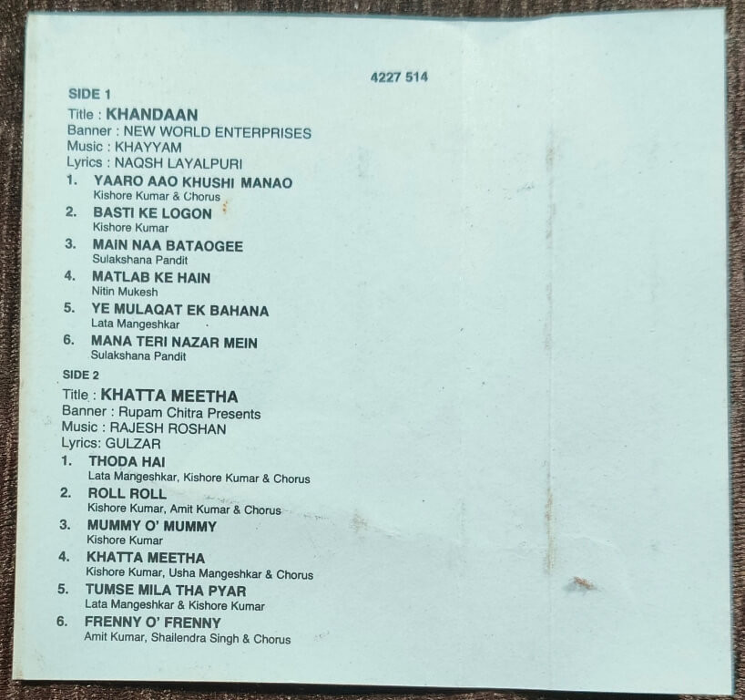 | Title | : | Khandaan / Khatta Meetha |