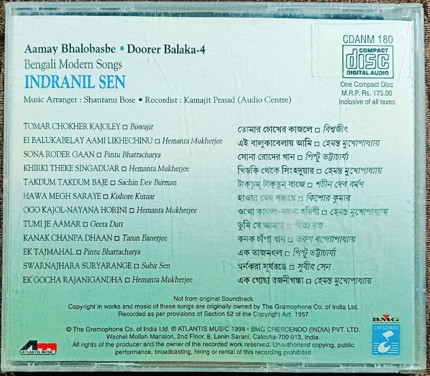 | Title | : | Indranil Sen – Amay Bhalobasbe – Durer Balaka Vol. 4 – Modern Bengali Songs |