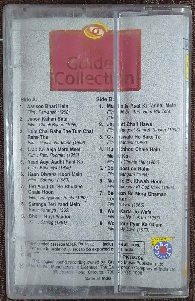| 2. Jaoon Kahan Bata (Chhoti Bahen 1959) | : | Mukesh |