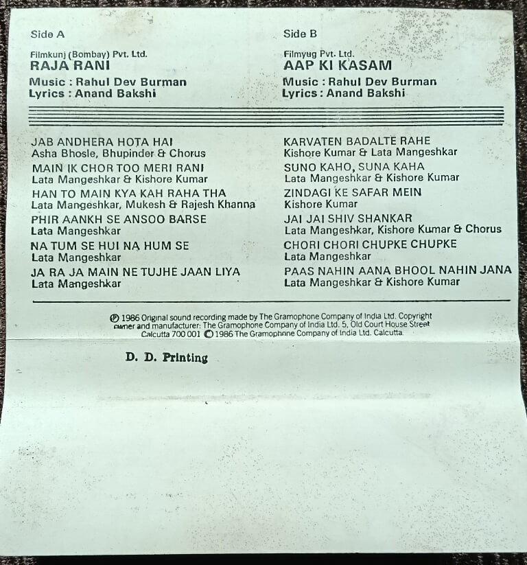 | Music Direction of Raja Rani | : | Rahul Dev Burman |
