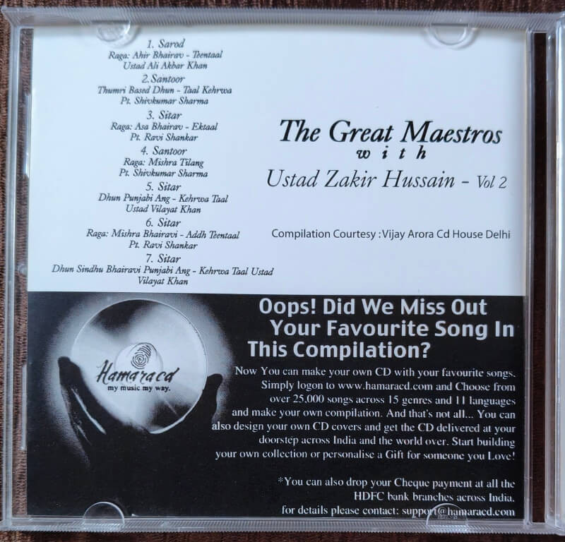 | Title | : | The Great Maestros With Ustad Zakir Hussain - Vol 2 |