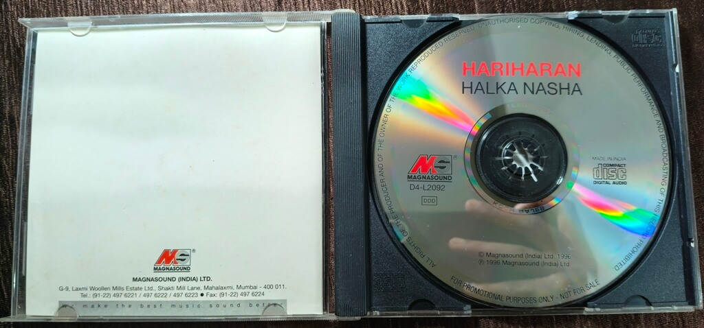 Audio CD, supplied with original jewel case and printed inlay. A clean, honest collectible copy—ideal for Hariharan fans, Indian classical collectors, and Magnasound label enthusiasts. |