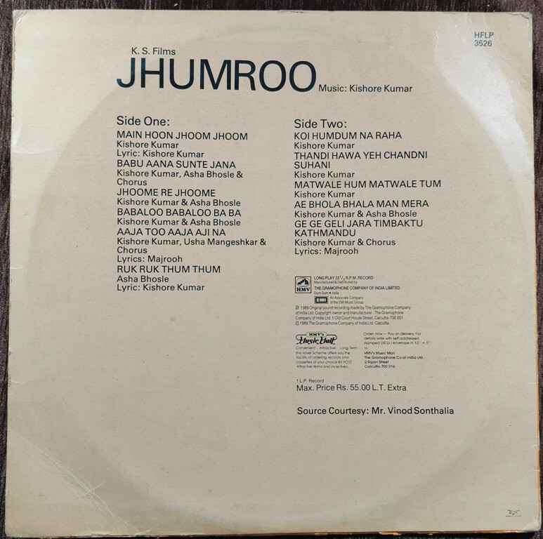 | A5. Aaja Too Aaja Aji Na | : | Kishore Kumar, Usha Mangeshkar & Chorus |